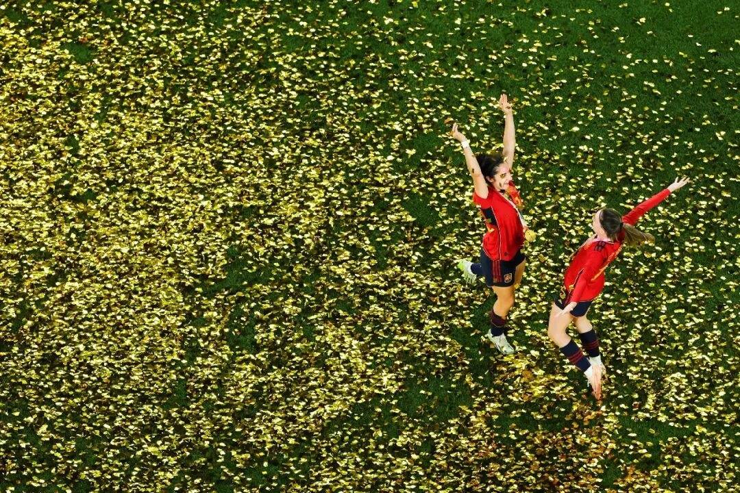 图为西班牙队球员在2023年国际足联女足世界杯决赛赛后庆祝夺冠。新华社记者 白雪飞 摄